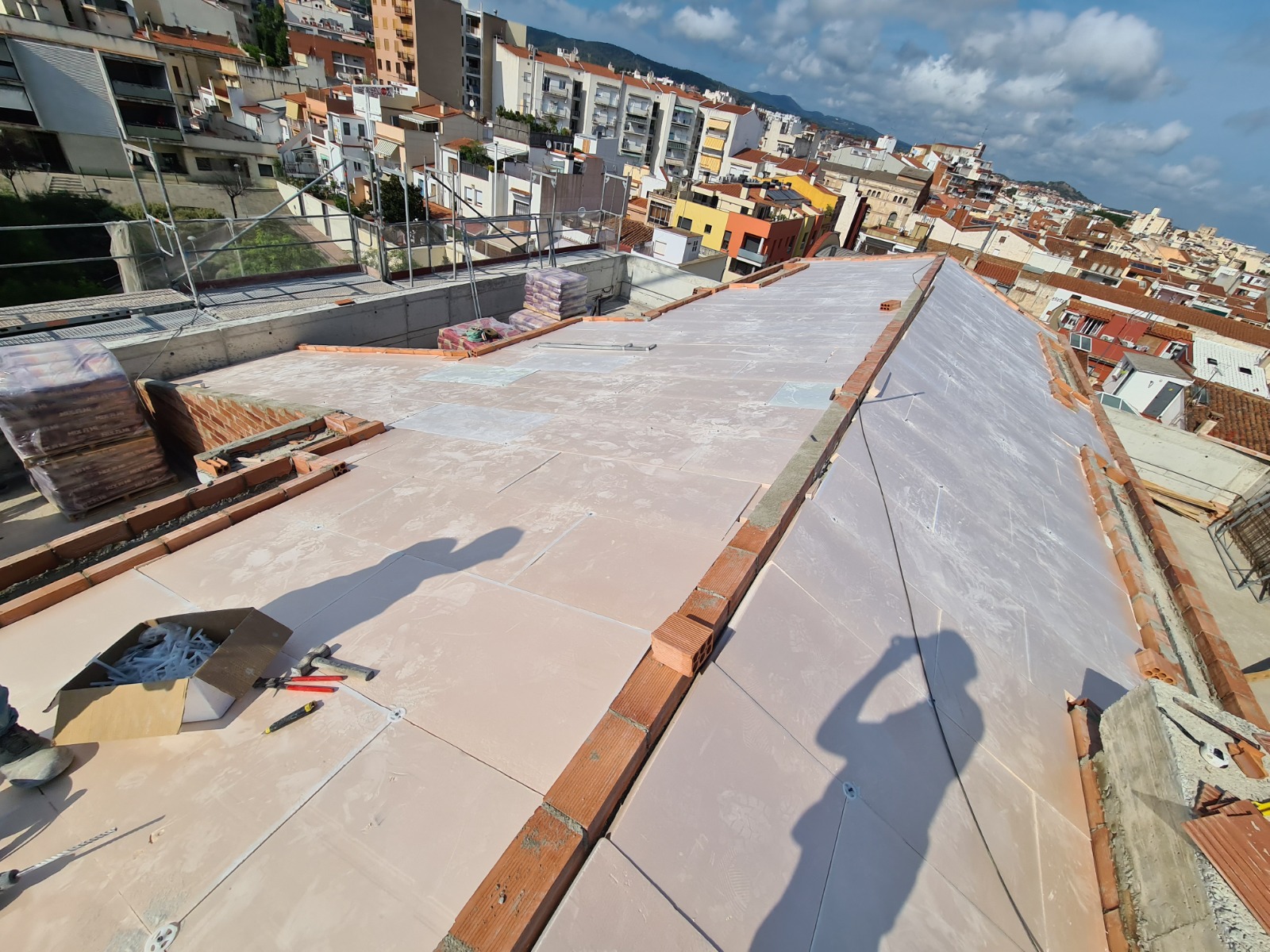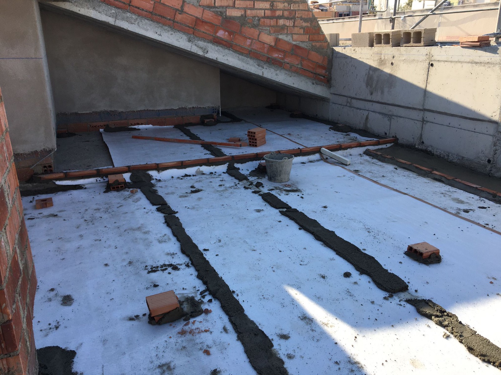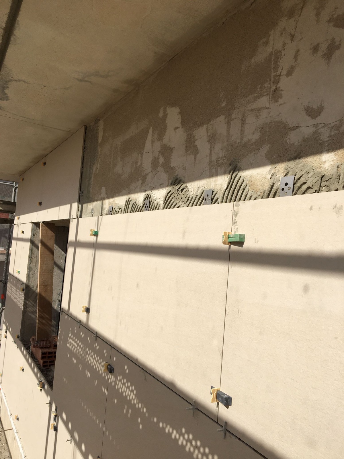 - Enfoscados maestreados de los baños en el edificio residencial de mataro