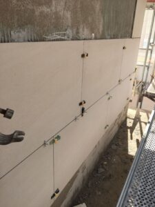 • Enfoscados maestreados de los baños en el edificio residencial de mataro